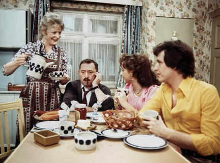 Die erste Folge der Persiflage auf die sogenannte Familienidylle Ein Herz und eine Seele des Drehbuchautors Wolfgang Menge wird in der ARD ausgestrahlt. Bei Wikipedia ist zu lesen: "Die Serie zeigt stark überspitzt das Zusammenleben einer deutschen Familie in einer Reihenhaussiedlung zu Anfang der 1970er Jahre. Sie behandelt neben üblichen Alltagsthemen vor allem das Aufeinanderprallen der kleinbürgerlich-konservativen Einstellung der Eltern mit den idealistischen Ansätzen der 68er-Bewegung, für die Tochter und Schwiegersohn stehen." Die Hauptakteure sind: Alfred Tetzlaff (Heinz Schubert), Else Tetzlaff (Elisabeth Wiedemann), Rita Graf, geb. Tetzlaff (Hildegard Krekel), Michael Graf (Diether Krebs).